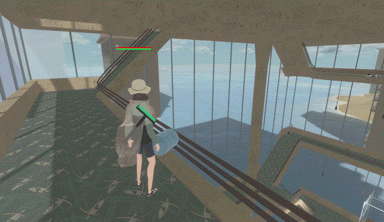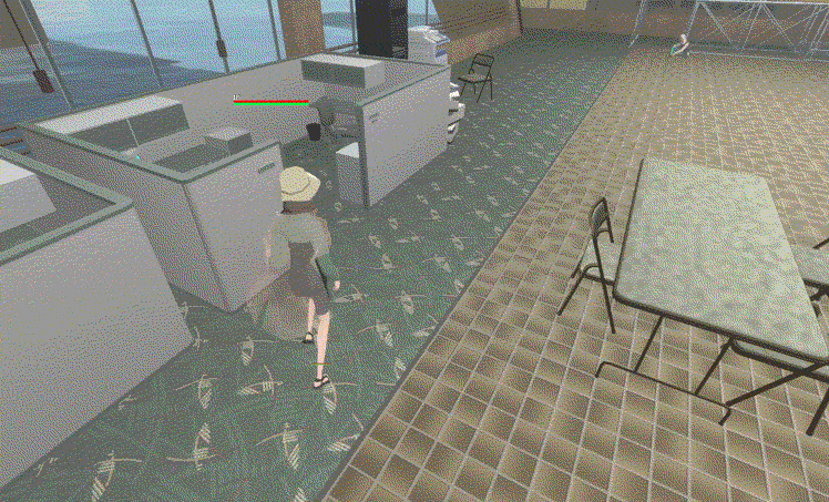 The player throws a grenade which can cause most furniture to get knocked around. The object has the “combustible” property.