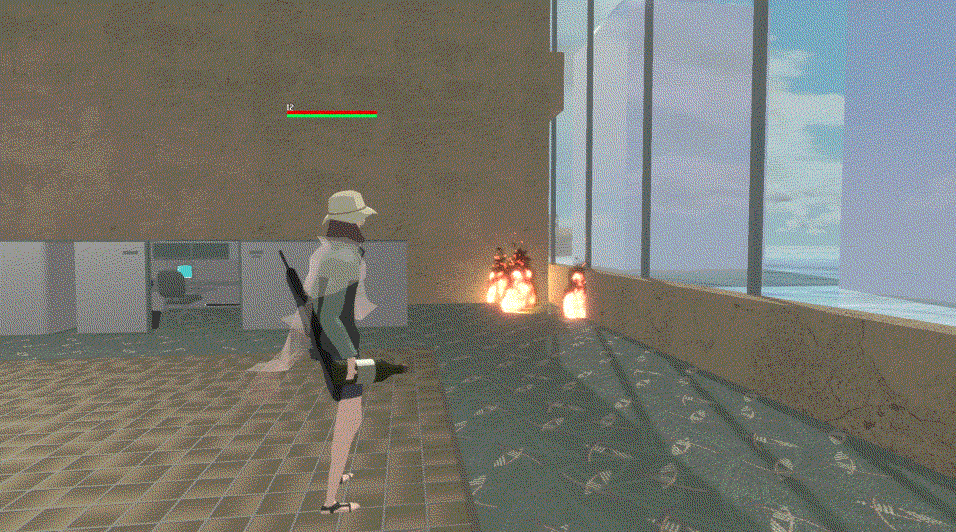 Electricity is produced by water and electronics coming into contact with one another. When this happens a shockwave expands outward until it reaches a certain radius. This repeats until the interaction ceases. Anyone that touches a shockwave will be shocked, causing them to freeze for a few seconds leaving them vulnerable to attacks. Therefore it’s useful for the player to try to create shockwaves near enemies prior to combat encounters for a preemptive strike or during a battle if possible.