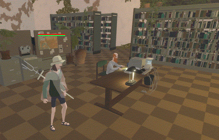 Throughout the environment in Wake, there is a cast of friendly NPCs to meet. Fellow members of the rangers, wanderers, merchants and mysterious characters live in the surrounding world with their own daily routines. The player can interact with them to gain knowledge, purchase or sell goods, accept/progress quests, or just to chat.